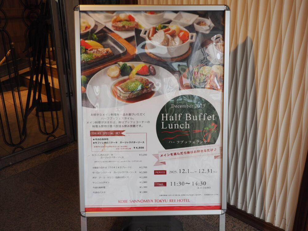今回のお目当て「Half Buffet Lunch(ハーフブッフェランチ)」は11:30~14:40(L.O.14:00)で提供されており、事前予約がなくても席が空いていればお食事を楽しめます。