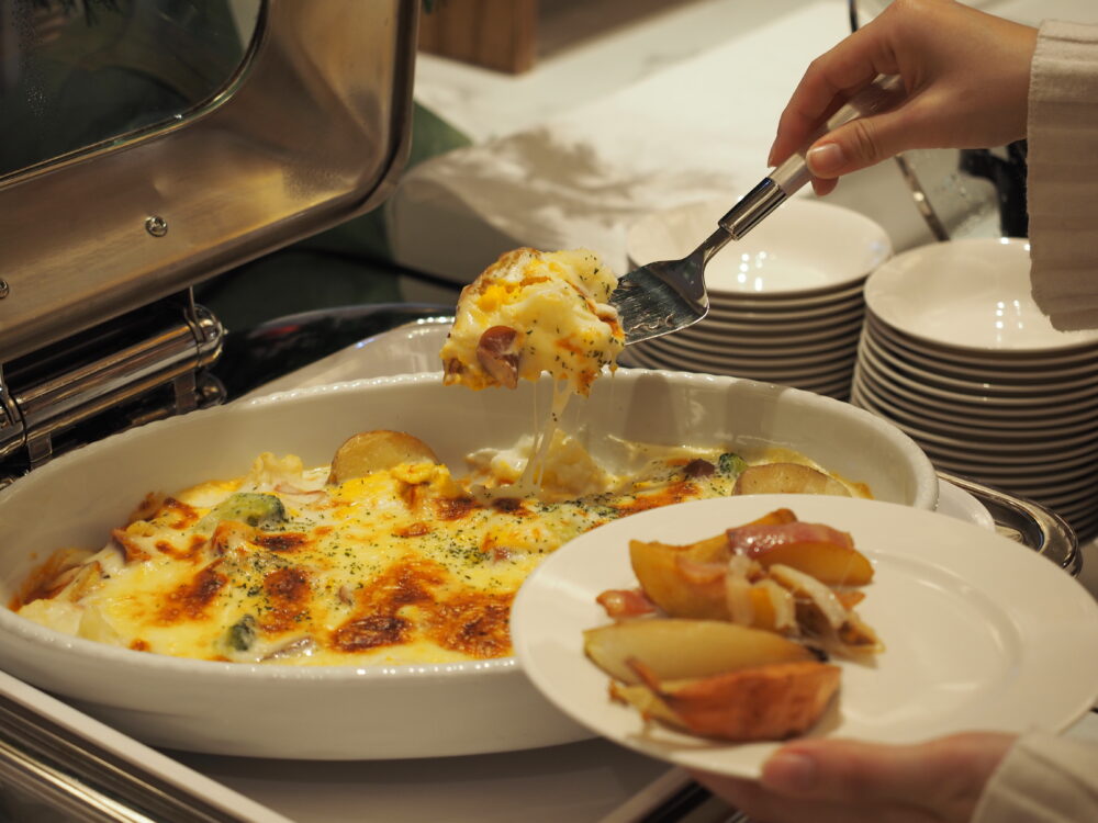 デリは全部で3種類。この日はグラタン・淡路島産オニオンステーキ・リヨネーズポテトと冬らしいラインナップに。