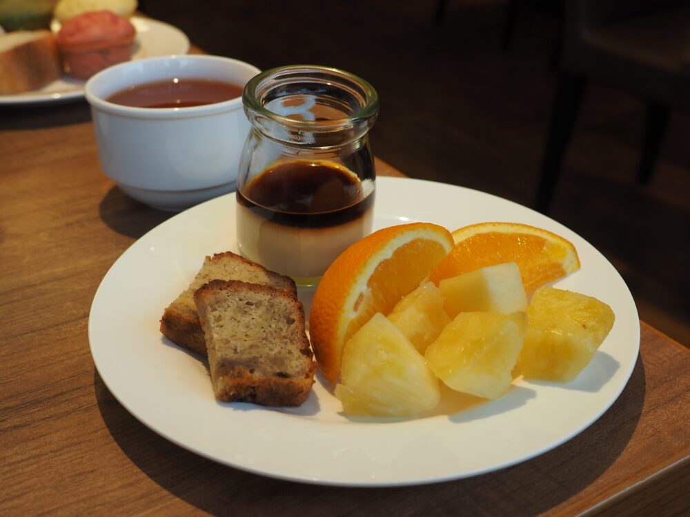 締めはやっぱりデザート!フルーツや自家製のプリン・わらび餅・ヨーグルト・パウンドケーキなどが並びます。