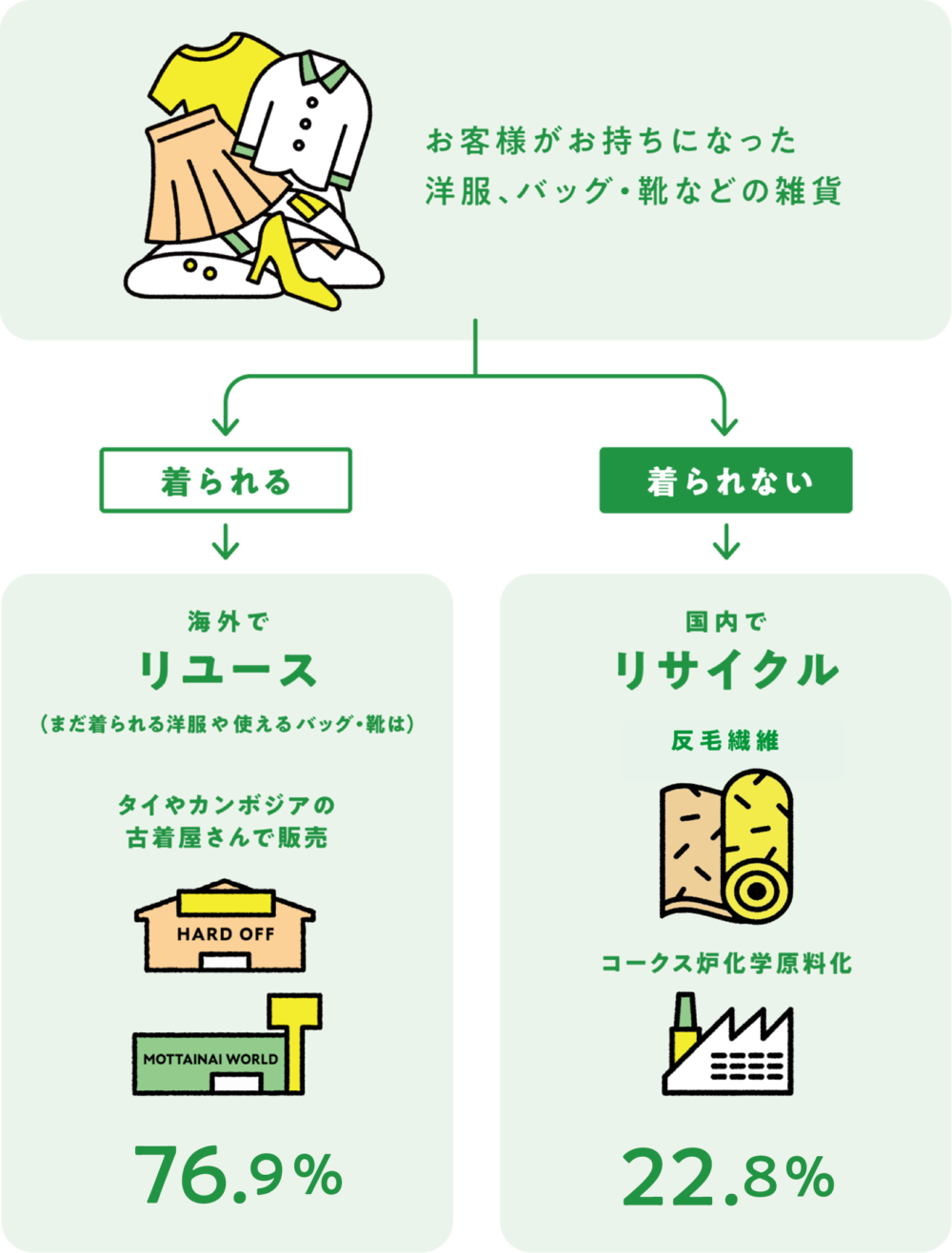 ※リサイクルを有効に行えるよう、店頭に持ち込む前に洗濯してください。