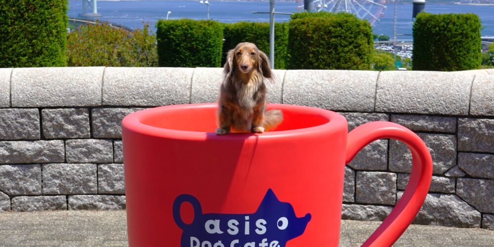 写真の場所は、実は兵庫県内にあるんです。それが淡路島の「オアシスドッグカフェ」。明石海峡大橋を望む高台に立地する施設「淡路ハイウェイオアシス」内の、ワンちゃんと一緒に楽しめるカフェです。
