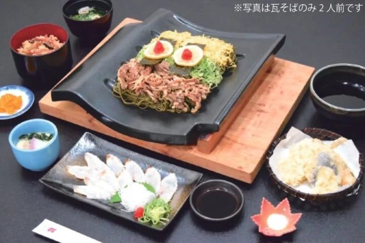 昼食には、山口を代表するソウルフード「瓦そば」を味わえるそうです。アツアツの瓦の上で焼いた茶そばに、錦糸卵や甘辛く煮た牛肉などを添えた、香ばしさが魅力の一品です。