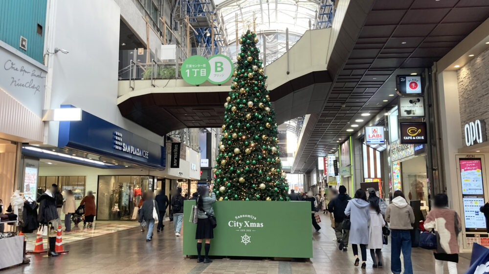 JR三ノ宮駅より海側の「フラワーロード」沿いに、街路樹のイルミネーションが行われてます。