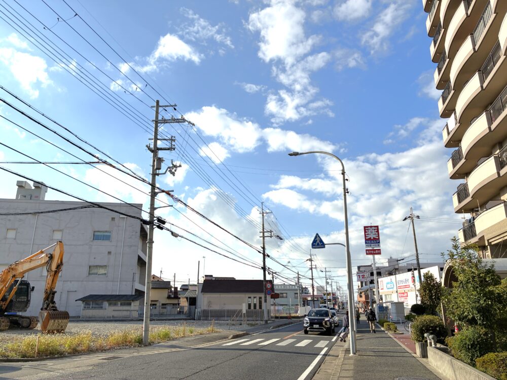 反対を向くとこんな感じ。周辺にはマンションが立ち並び、少し先に進むと「JAファーマーズプチ フレッシュ・モア 江井ヶ島」があります。