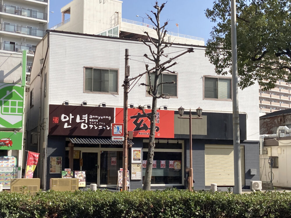 湊川駅とのちょうど間くらいの場所で、昨年12月にできた「サムギョプサル アンニョン」の隣です。