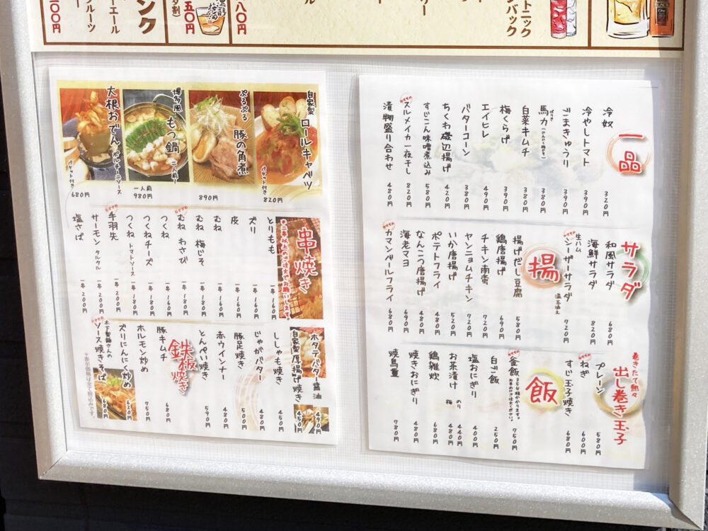 メニューは、お箸で切れるほど柔らかいという「自家製ロールキャベツ」(820円)やこだわりの出汁の博多風もつ鍋(一人前980円)が推しメニューで、焼き鳥(160円~)や一品メニューもいろいろある感じ。