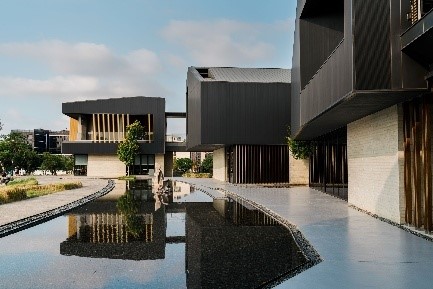 台湾桃園国際空港から車で15分(桃園MRTで約20分)の好立地に構え、プリツカー賞受賞の日本人建築家・山本理顕によって設計されました。