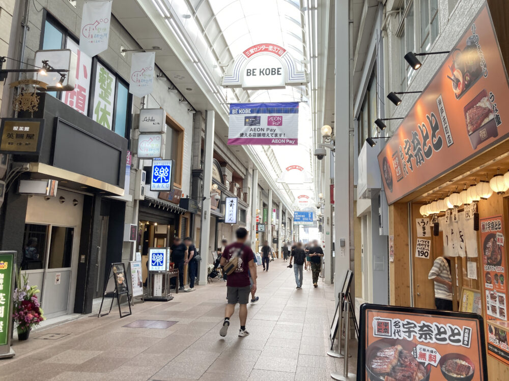 西隣は喫茶館「英國屋」で、アーケードの出口のところが鯉川筋、「三宮一貫楼」があるあたりです。