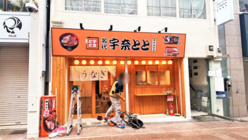 東隣はアンティークショップ「楽」で、ほぼ向かいにうなぎ店「名代 宇奈とと」があります。