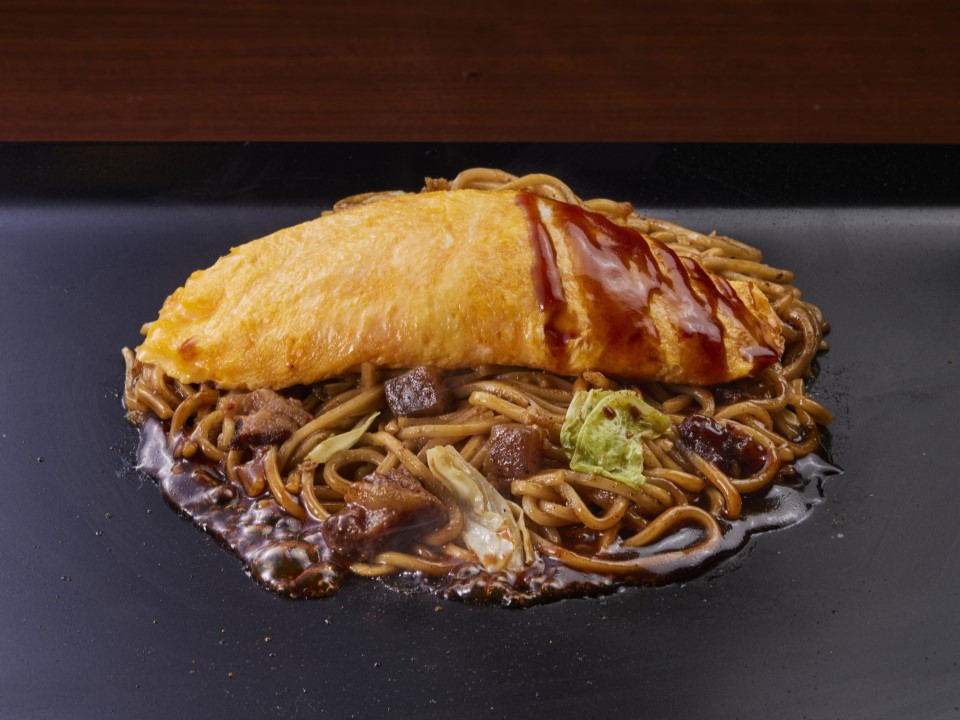 鉄板でふわふわに焼き上げられた「たまご」を、ぼっかけ焼きそばにのせて提供。