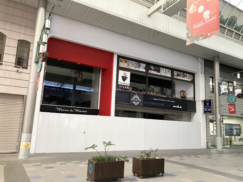 ちなみに、敷地の北側、元町商店街へまわると、2025年に閉店した「メゾン・ド・マルシェ」跡があります。工事用の仮囲いで閉ざされて、2階部分からのぞいていた恐竜たちもいなくなってます。