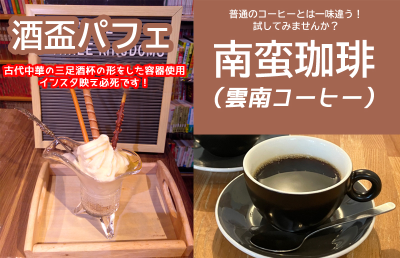 入館料は大人200円・小学生100円というリーズナブルさ。パフェやコーヒーの提供もあり、横山さんの作品や三国志についてあまり詳しくない人も気軽に立ち寄れそうですね。