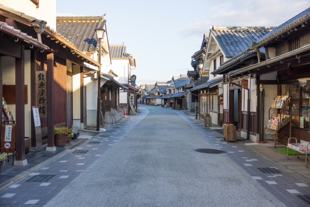 江戸時代の風情が残る『河原町妻入商家群(かわらまちつまいりしょうかぐん)』では、約600mにわたって続く歴史的な町並みを見ることができます。