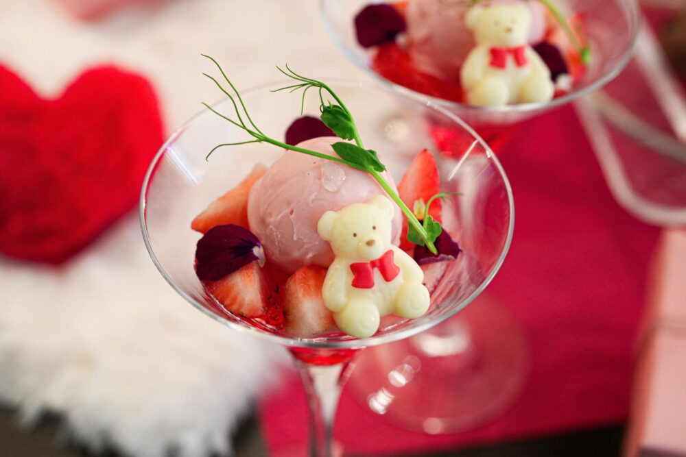 バレンタイン・ホワイトデーの季節ということで、赤やピンクを基調とした色合いのスイーツが用意されるそうです。