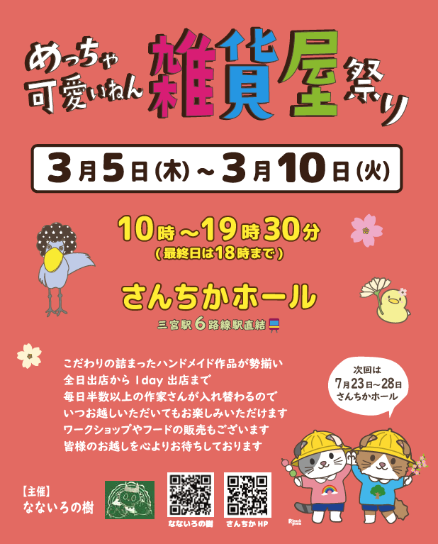 さんちかで、ハンドメイド作品のお店がたくさん出店するイベント『めっちゃ可愛いねん雑貨屋祭り』が開催されます。