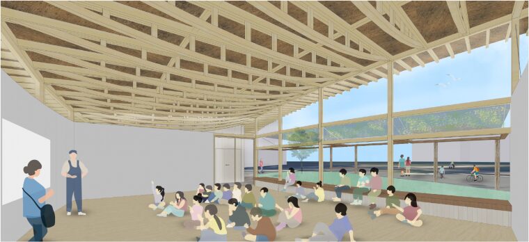 新たに整備される環境学習施設は、主に環境学習の拠点として活用されるとともに、地域住民や来街者が日常的に利用できる休憩機能を備えた、憩い・にぎわいの場となることを目指しています。