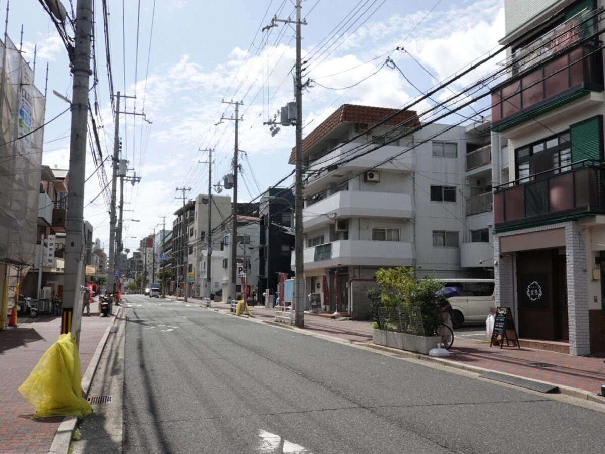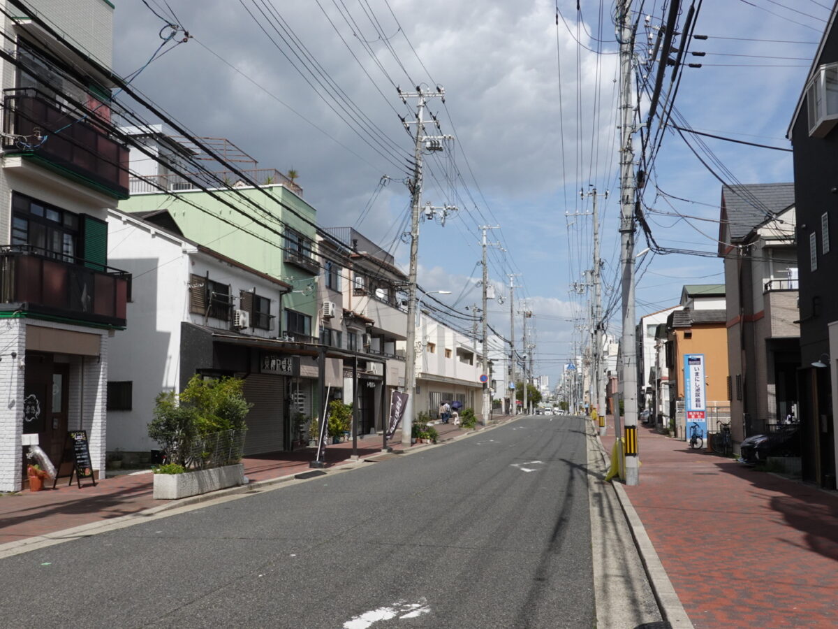 東を向くとこんな感じ。数軒先には、ベーカリー「トクパン」も見えます。「岩屋公園」や「阪神 西灘駅」もある方面です。
