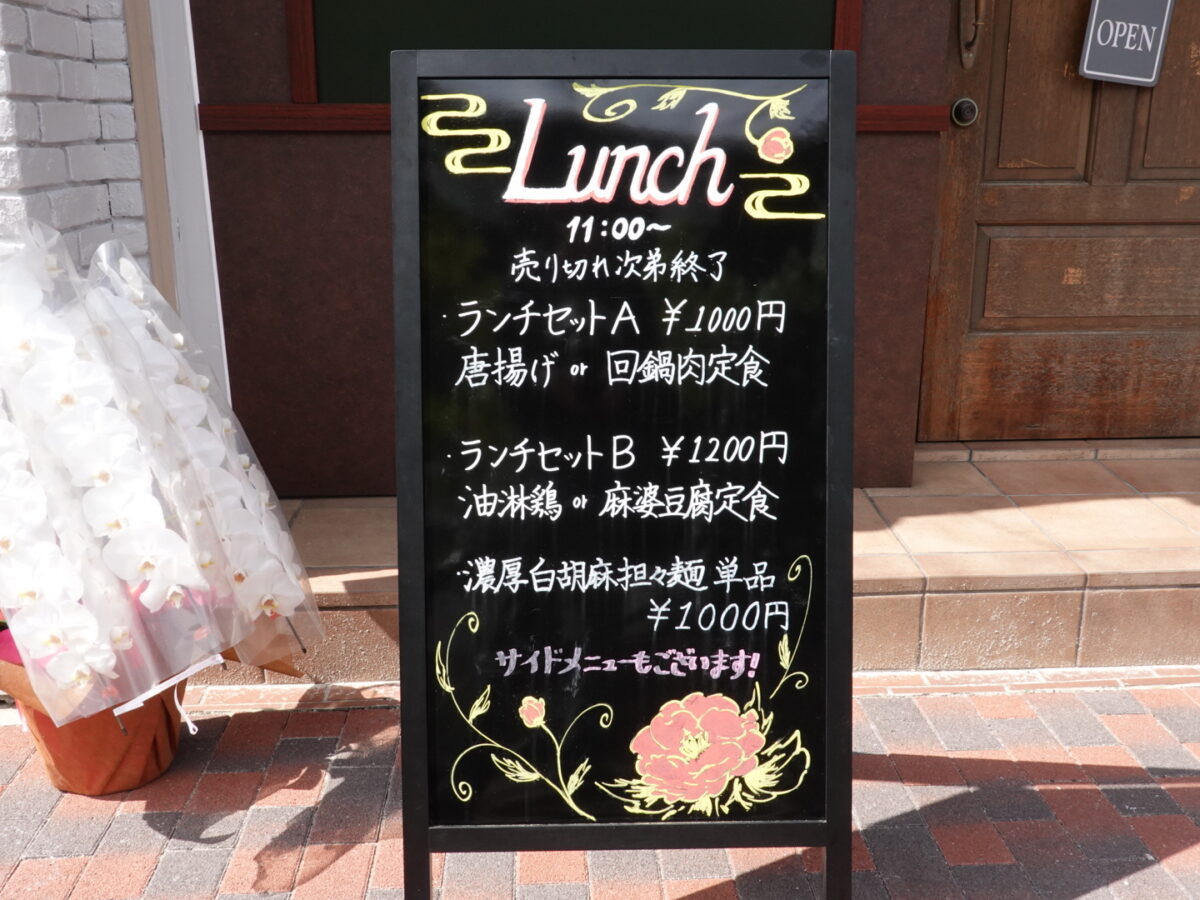 ボードを見ると、「ランチセットA」は、1000円で「唐揚げ」or「回鍋肉」を選んで定食にできるそう。「ランチセットB」は、「油淋鶏」or「麻婆豆腐」を選べて1200円となっています。