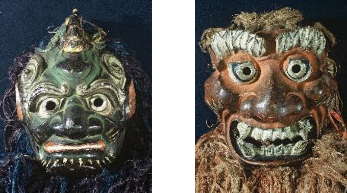 儀式の際に鬼役が着用する「追儺面(ついなめん)」は、室町時代に制作されたと考えられる、県内で最も古い追儺面です。赤鬼面と青鬼面の個性的な表情に注目です。