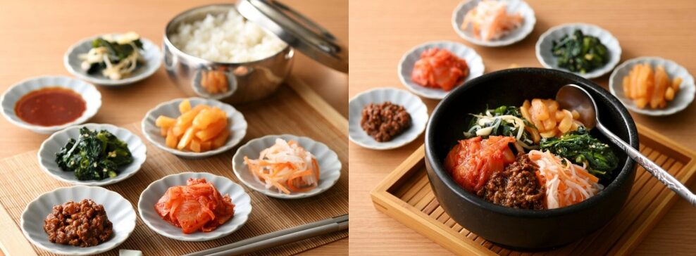韓国料理の食卓に欠かせないナムルは、うれしい「食べ放題」。ご飯に添えて「ビビンバ」としても楽しめます。