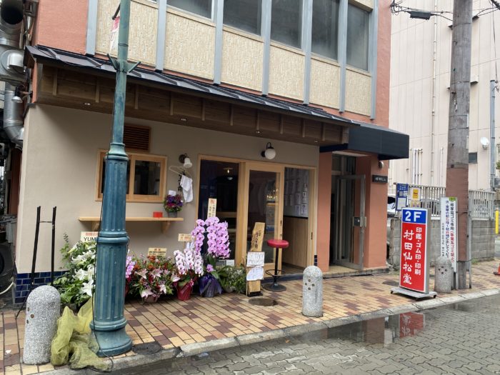 瓦のような軒が掛かっていて、窓枠が木で囲まれた「和」な外観。入り口はガラス張りで、フラっと入りやすい雰囲気ではないでしょうか。
