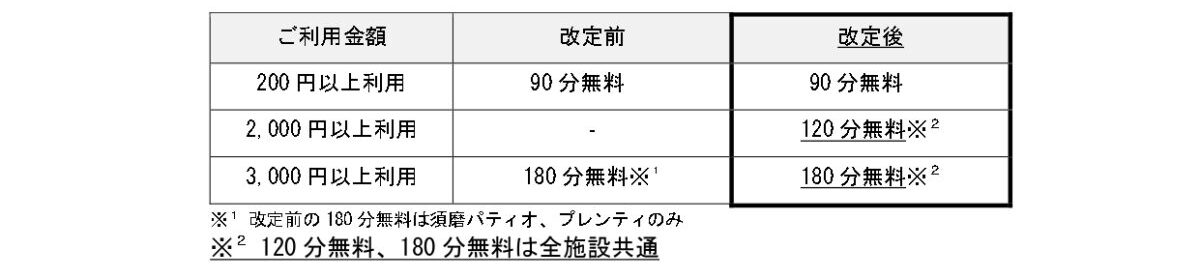 ショッピングセンターの無料駐車サービスについては、神戸ウェストメンバーズ会員の利用金額に応じて拡充されます。