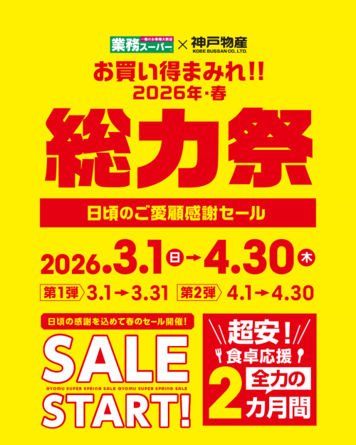 業務スーパーで、春の「総力祭」が開催されます。