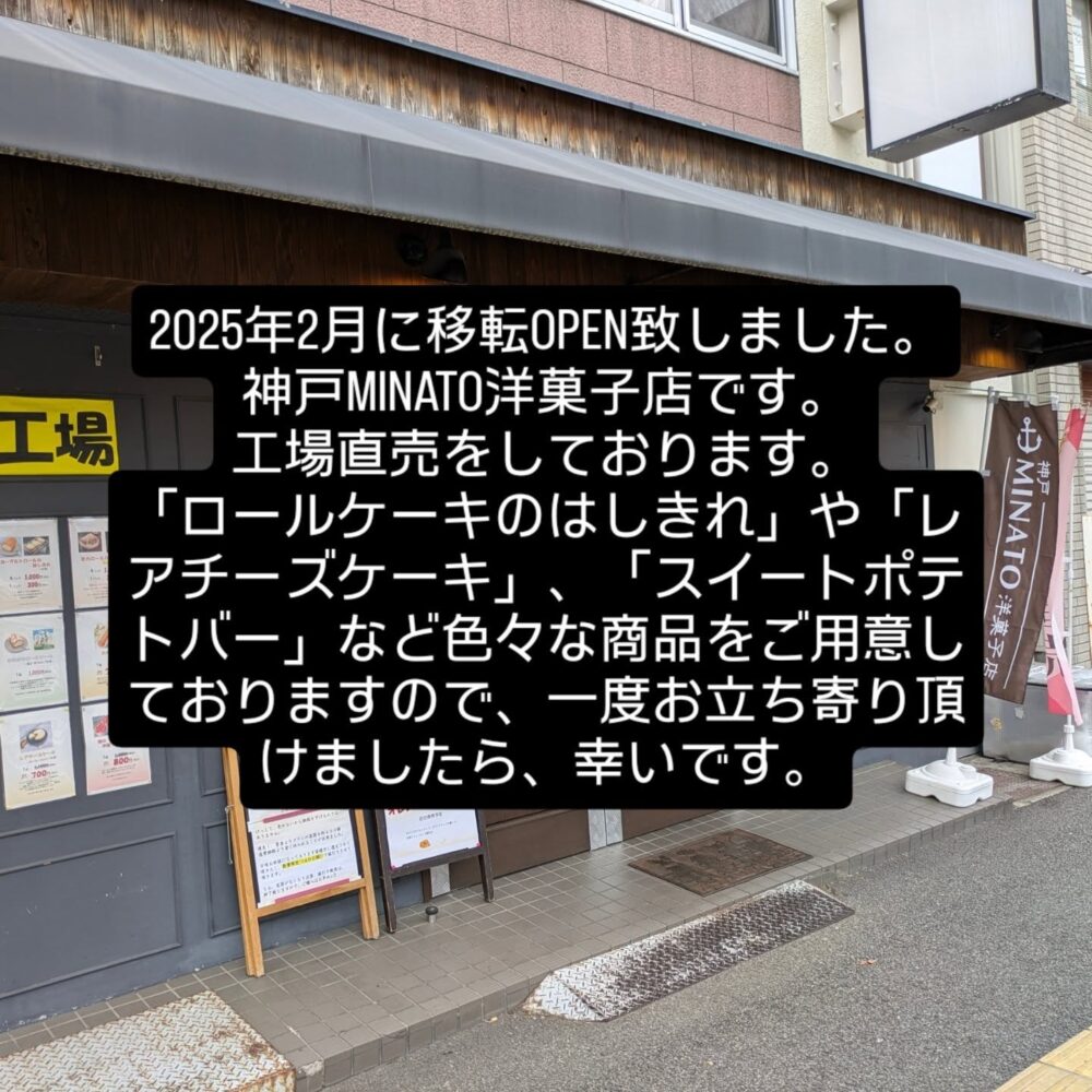 『MINATO洋菓子店』は、駅ナカショップや商業施設向けのスイーツ製造メーカー。工場直売店は、2025年2月に春日野道から湊川駅の近くに移転オープンしました。