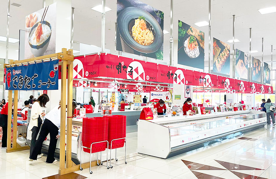 パーク内の「工場直売店」では、当日工場で出来上がったばかりの「できたて明太子」をゲットできます。