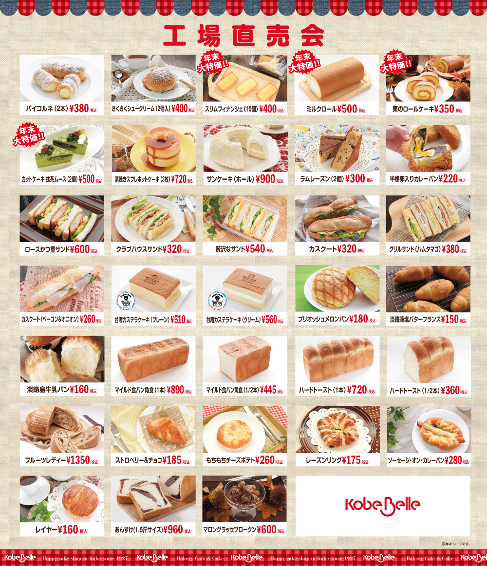 『神戸ベル』は、1927年創業の神戸の老舗パン・洋菓子メーカーです。東灘区・住吉浜にある本社工場では、パン・スイーツがお得に買える「工場直売会」が月に1回ほど開催されています。