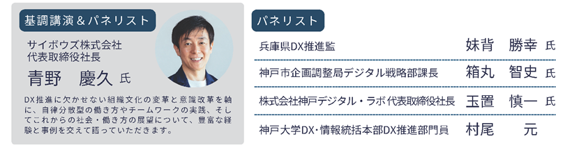 外部講師は、サイボウズ株式会社 代表取締役社長の青野 慶久氏。DX推進に欠かせない組織文化の変革と意識改革を軸に、自律分散型の働き方やチームワークの実践、そしてこれからの社会・働き方の展望について、経験と実例を交えて話してくれるそうです。