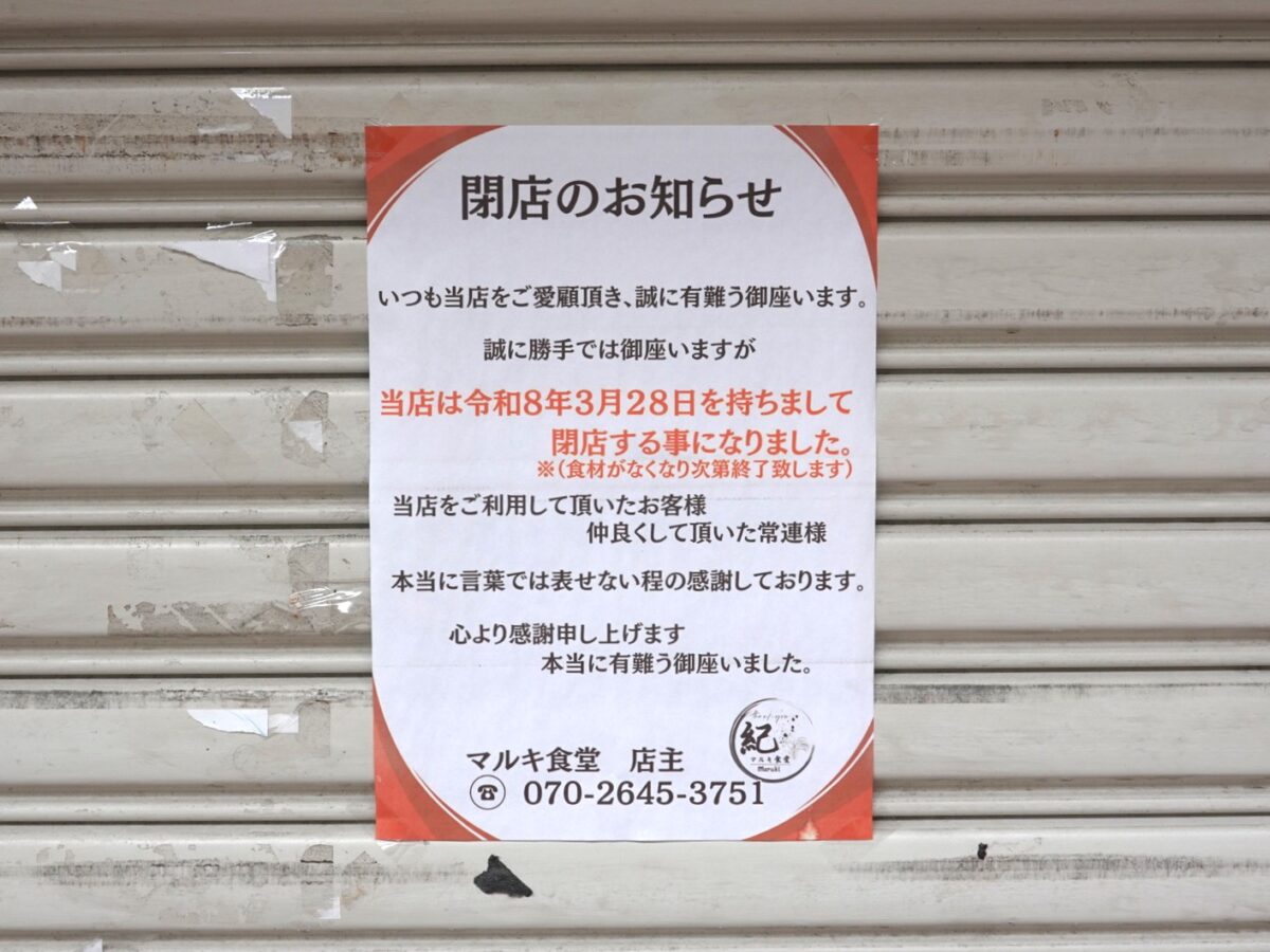 阪急 岡本駅近くの『マルキ食堂』ってお弁当屋さんが閉店してます。