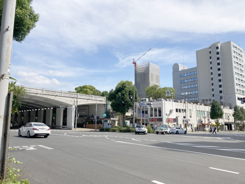 お店は、交差点「湊川公園西口」の南東角にある階段を上った入口近く、レンガ色のタイルが貼られた店舗スペースです。