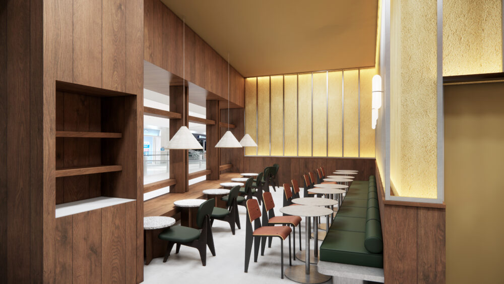 お店ができるのは、西宮ガーデンズの3階で、明るく開放的な吹き抜けに面した角地にオープンします。店内はブラウンの板張りで構成され、落ち着いた雰囲気に。