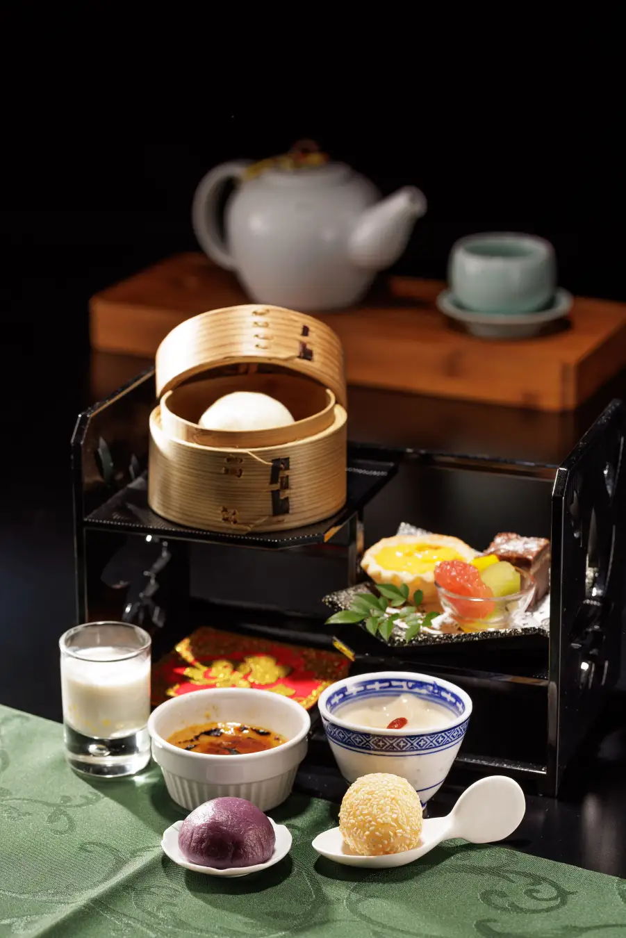 ・デザート8種(チョコレートケーキ/タピオカココナッツミルク/杏仁豆腐/ジャスミン茶ブリュレ/ココナッツタルト/紅芋団子/桃饅頭/胡麻団子/シーズナルフルーツ)