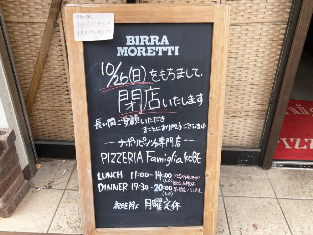 コロナ禍にも負けず11年営業を続けた『ピッツェリア ファミリア』、閉店日は2025年10月26日(日)です。