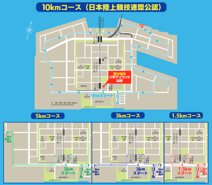 10kmの部は日本陸上競技連盟の公認コースで、上位入賞ランナーは「KOBE MARATHON HYOGO MAJORS」プログラムにより「神戸マラソン」への参加の機会が得られます。