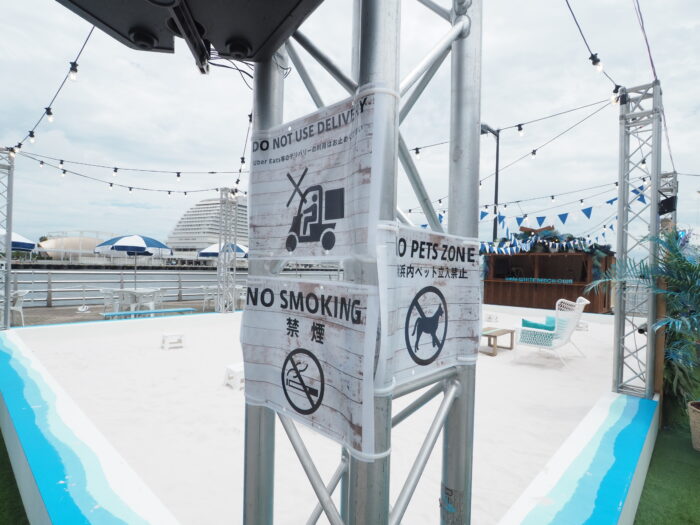 ちなみに禁煙で、デリバリーなどを呼ぶことや砂浜内へのペットの立ち入りは禁止になってます。