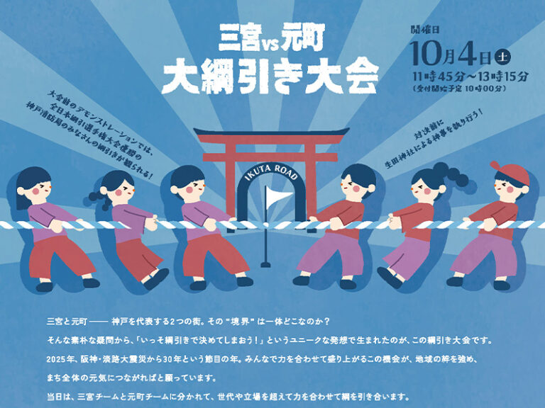 対決前には生田神社による神事が執り行われ、デモンストレーションでは全日本綱引選手権大会で優勝した「神戸消防局」による綱引きも見ることができるそうです。※参加者の募集は終了しています。