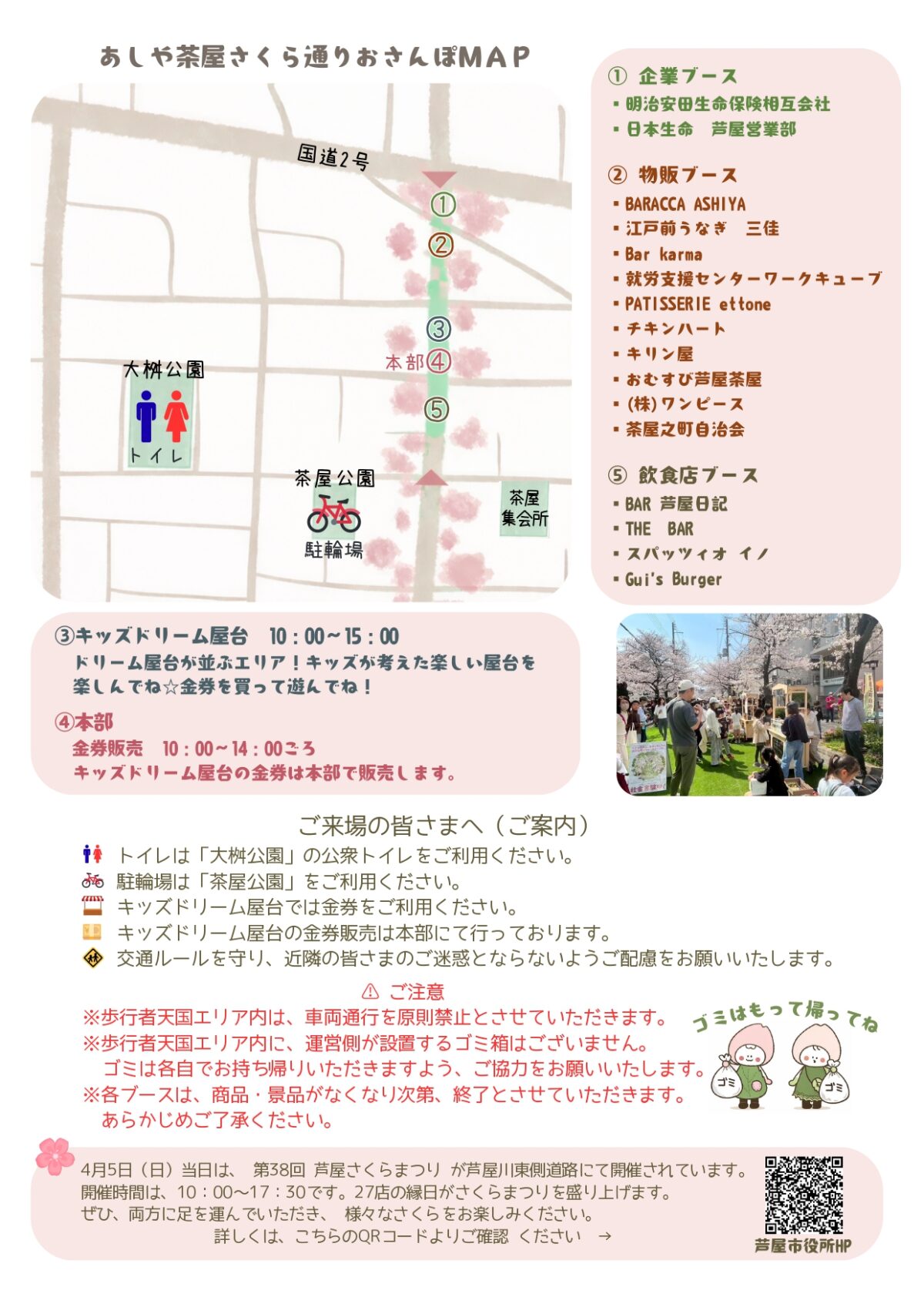当日は、芦屋川東側道路にて「第38回 芦屋さくらまつり」も開催されます。27店の縁日がさくらまつりを盛り上げるみたい。
