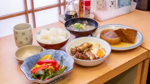 それではいただきます。手作りのおばんざい、ひとつひとつの味付けが凝っていて、すごく美味しい!