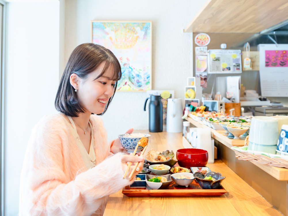 お店は、ヘルシーなランチが評判の定食屋さんで、手づくりのおばんざいには、野菜がたっぷりと使われているんですって。