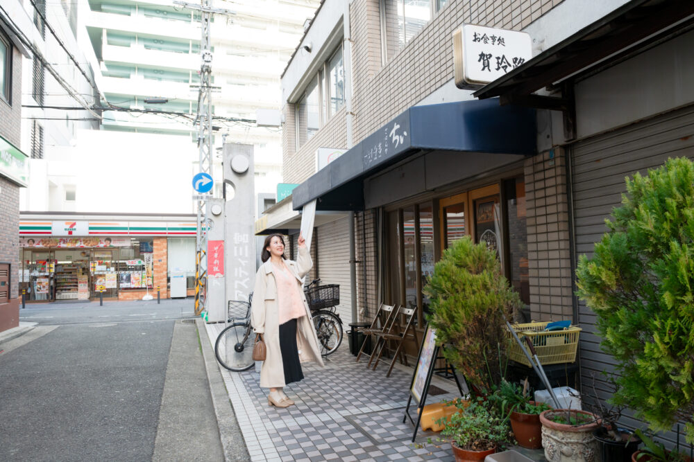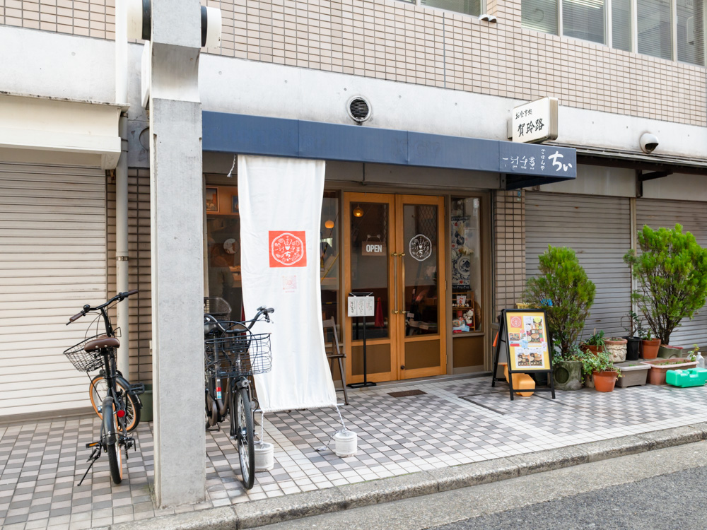 各線三宮駅から東へ徒歩およそ8分、ごはんや ちぃ 一汁千菜 に、到着!ビルに囲まれている立地の中、こじんまりとした構えで、木枠のエントランスがぬくもりを感じられる外観です。