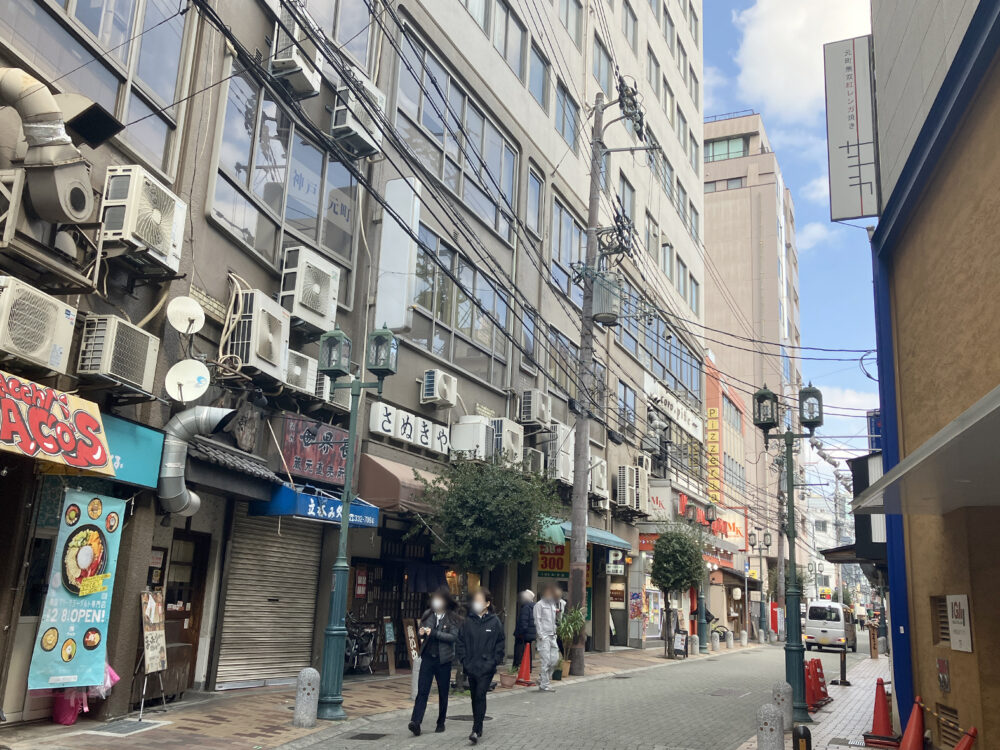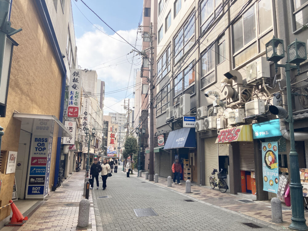 東を向いて真っ直ぐ行くと「神戸元町郵便局」や、コロッケで有名な「森谷商店」がある通り。
