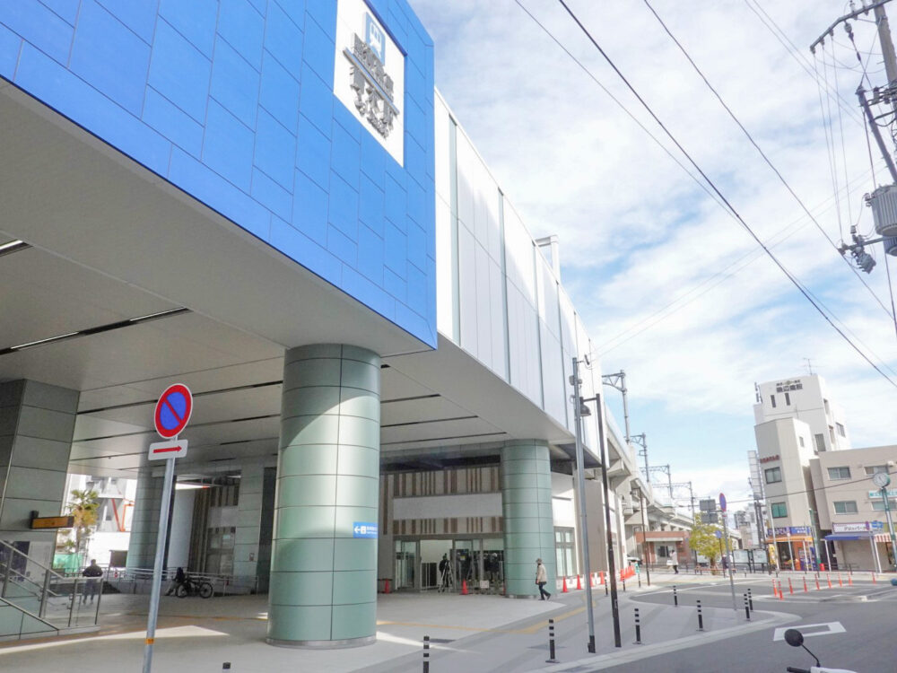 お店ができるのは、阪神 青木駅の改札口を出てすぐのところ。ロータリーがある南側です。