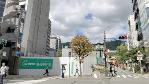 『とりいちず』ができるのは、「東門街」の東西にはしる短い通りです。西を向くと「生田神社」の南門や「旧東急ハンズ跡地」があります。