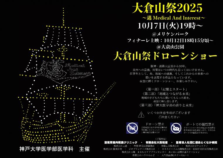 メリケンパークで『ドローンショー』が開催されます。神戸大学の医学部医学科が主催する「大倉山祭」の前夜祭イベントです。