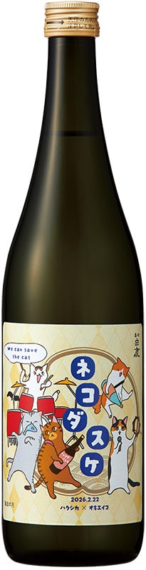 『黒松白鹿 ネコダスケ 特別純米 山田錦』は、2月22日の「猫の日」を記念して、SNSやメディアで人気のイラストレーター・オキエイコさんが野良猫の実質的殺処分ゼロへの想いを込めてデザインした、限定オリジナルラベルの商品です。