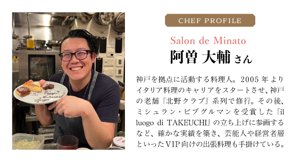 当日のディナーを担当するのは、神戸を拠点に活躍する料理人、阿曽大輔さん。