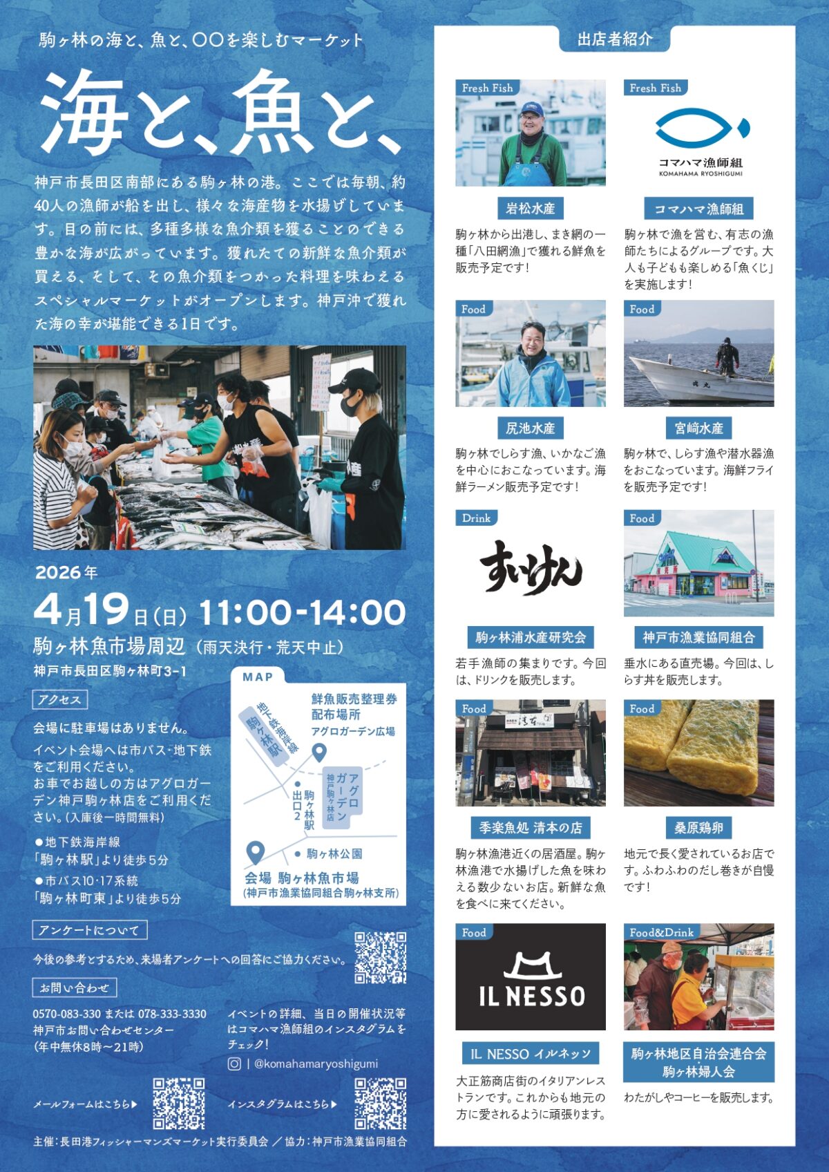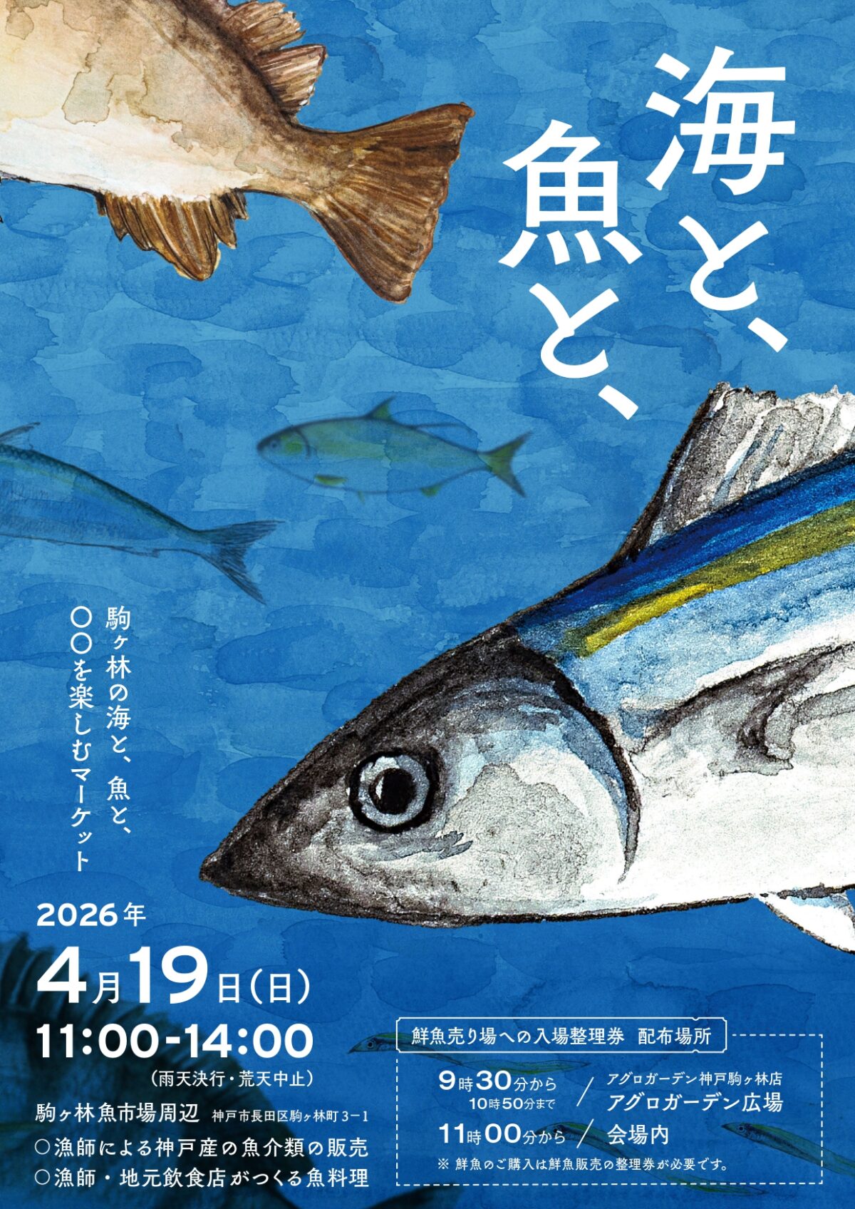 長田区にある「駒ヶ林魚市場」で、新鮮な『海の幸』を楽しめるマーケットが開催されます。